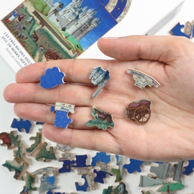This puzzle shows a harvest scene from the Très Riches Heures du Duc de Berry, an illuminated masterpiece from the 15th century. Created by brothers Paul, Jean, and Herman de Limbourg, this miniature depicts peasant life and medieval architecture, with the Chateau de Saumur in the background. The signs of the zodiac dominate the scene, linking earthly and celestial time.
