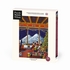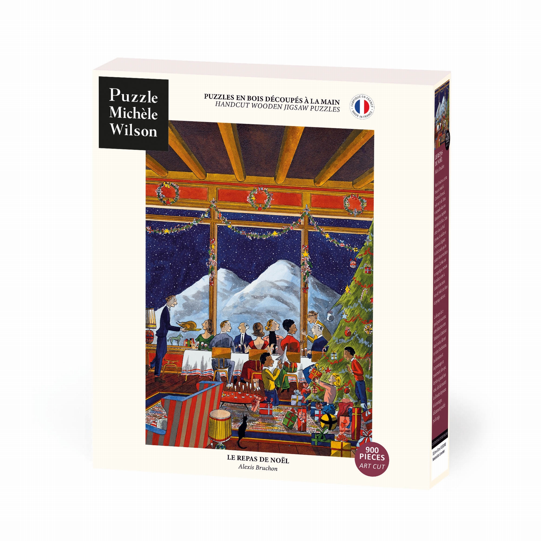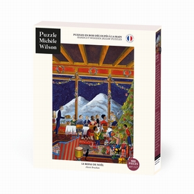 The way this large puzzle has been cut emphasizes this distinction between inside and outside. In the living room, it highlights the architecture, decorations and moving figures, while behind the large picture window, it brings out the imposing silhouette of the mountain, delicately topped with snow.