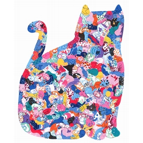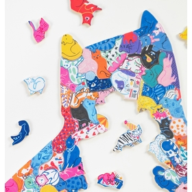 Inspired by our iconic "Les Animaux en Folie/Crazy Animals" puzzles, where each animal forms a unique piece, this puzzle includes around 200 pieces representing just as many cats! Playing diverse roles such as musicians, gamblers and gourmets, Camille de Cussac has given each one its own unique personality. The French artist, who lives and works in Paris, uses a vibrant color palette to create zany scenes populated by lively characters. This puzzle is shaped like a cat silhouette: remember to assemble it on a stable, non-slip surface for greater comfort!
