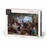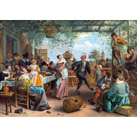 Jan Steen est un peintre néerlandais du Siècle d'or connu pour ses scènes de genre baroque. Le désordre qu'il représente souvent dans ses peintures a donné naissance à l'expression toujours utilisée aux Pays-Bas : "On dirait un intérieur à la Jan Steen". La découpe de ce puzzle met en valeur les nombreuses figures aux expressions exagérées !