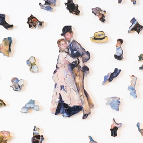 Auguste Renoir peint ce tableau intitulé Bal du Moulin de la Galette en 1876, du nom d'une guinguette populaire de la Butte Montmartre à Paris. Ce grand tableau de plus de 1,70 mètre de long est un chef d'oeuvre de la peinture impressionniste que l'on peut admirer au musée d'Orsay. Les jeux de lumière sur les vêtements et les visages des personnages ajoutent de la difficulté à ce puzzle, un véritable challenge !
