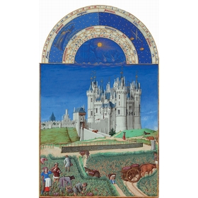 Ce puzzle représente une scène de vendanges tirée des Très Riches Heures du Duc de Berry, chef-d'oeuvre enluminé du 15e siècle. Réalisée par les frères de Limbourg, cette miniature mêle vie paysanne et architecture médiévale, avec en arrière-plan le château de Saumur. Les signes du zodiaque surplombent la scène, liant temps terrestre et céleste.