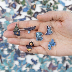 Yuliia Vaihicheva, artiste ukrainienne, s'inspire de la tradition des "fairy houses", ces maisons de fées issues des contes et légendes, pour créer des oeuvres où l'architecture fantastique se mêle aux éléments de la nature. En assemblant ce puzzle nommé "The Mystery of The Blubell Tree", vous prendrez plaisir à imaginer les histoires et les secrets que renferme cette demeure tout droit sortie d'un monde enchanté.
